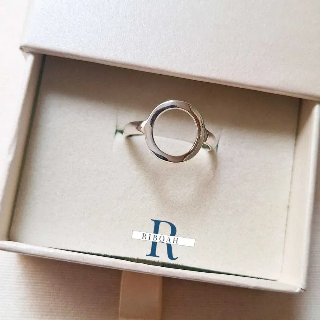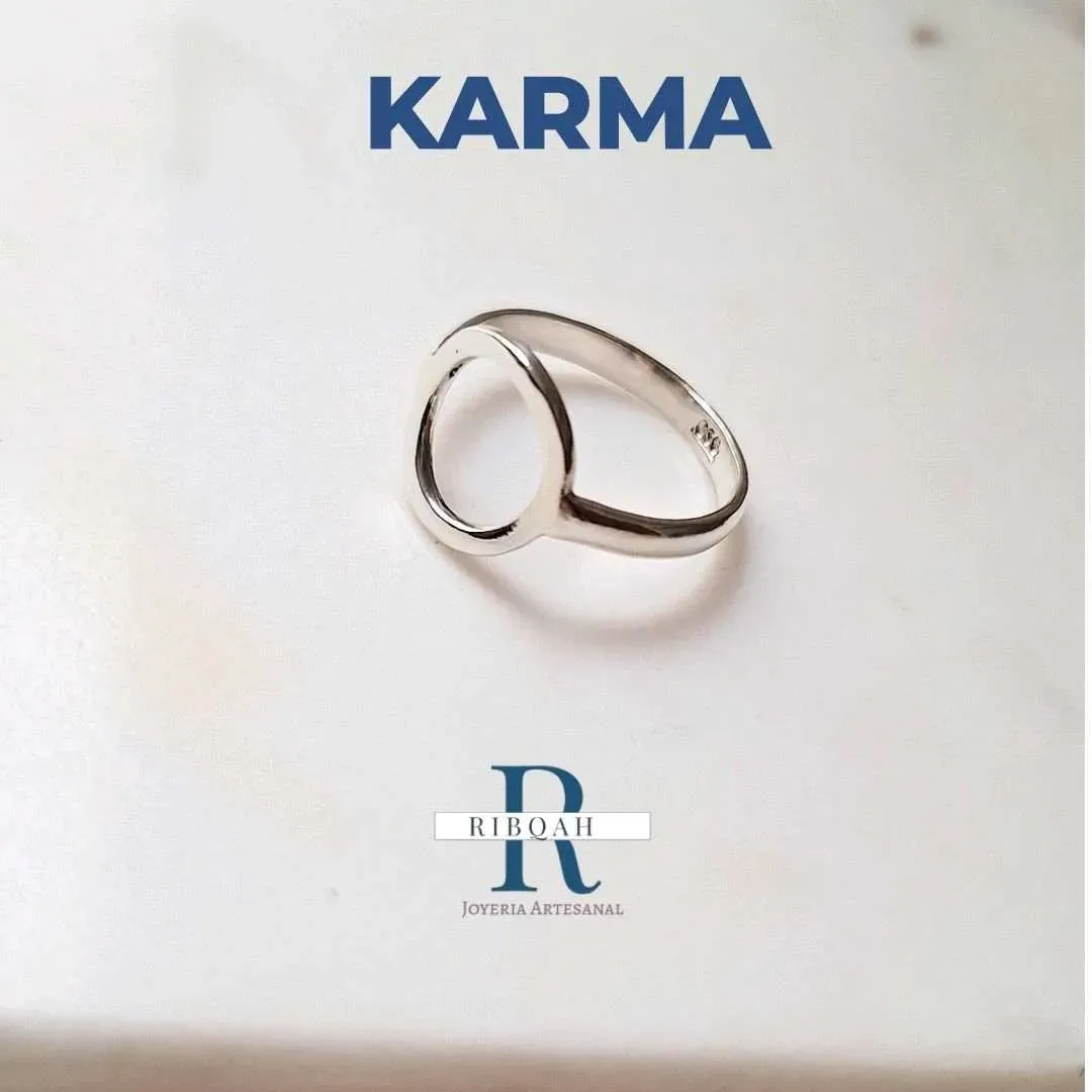 Anillo de plata con dije de circulo de la vida también conocido como circulo de karma.